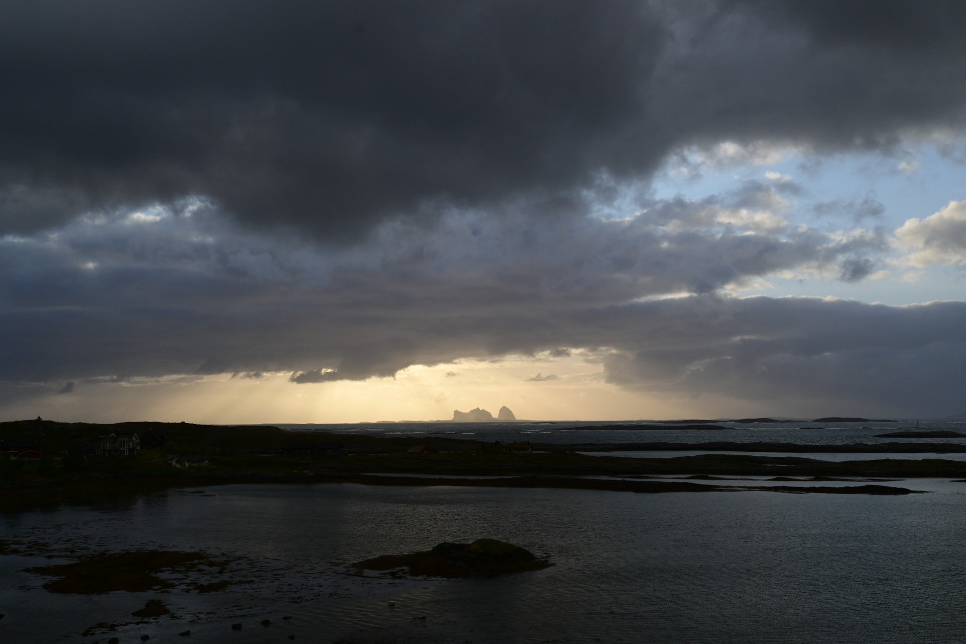 Spektakuläres Wetter auf Lovund mit Blick auf Træna