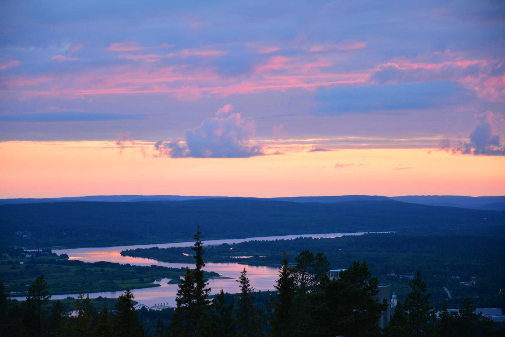 Am Abend kann man in Rovaniemi am Flussufer spazieren gehen und im Sommer genießen, dass es nicht mehr dunkel wird.