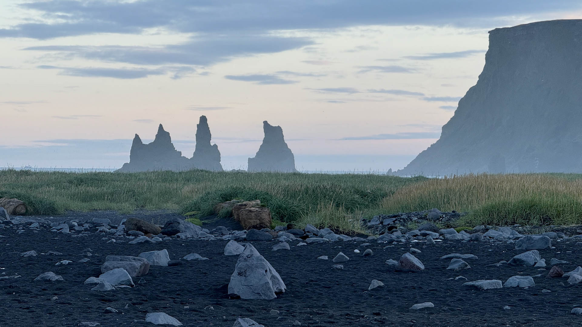 Heute fahrt Ihr über Stunden am Vatnajökull, dem größten Gletscher Europas, und dessen Ausläufern entlang. In der Gletscherlagune könnt Ihr zusehen, wie gekalbte Gletscherbrocken Richtung Meer treiben. Weiter führt die Ringstraße über schier endlose Sander, während in der Ferne schon der nächste Gletscher in Sicht kommt. Euer Tagesziel liegt zu Füßen des Myrdalsjökull in Vik. Dort lohnt sich der Spaziergang zum Strand aus schwarzem Lavagestein mit Blick auf die in der Brandung stehenden zackigen, schwarzen Felsen.