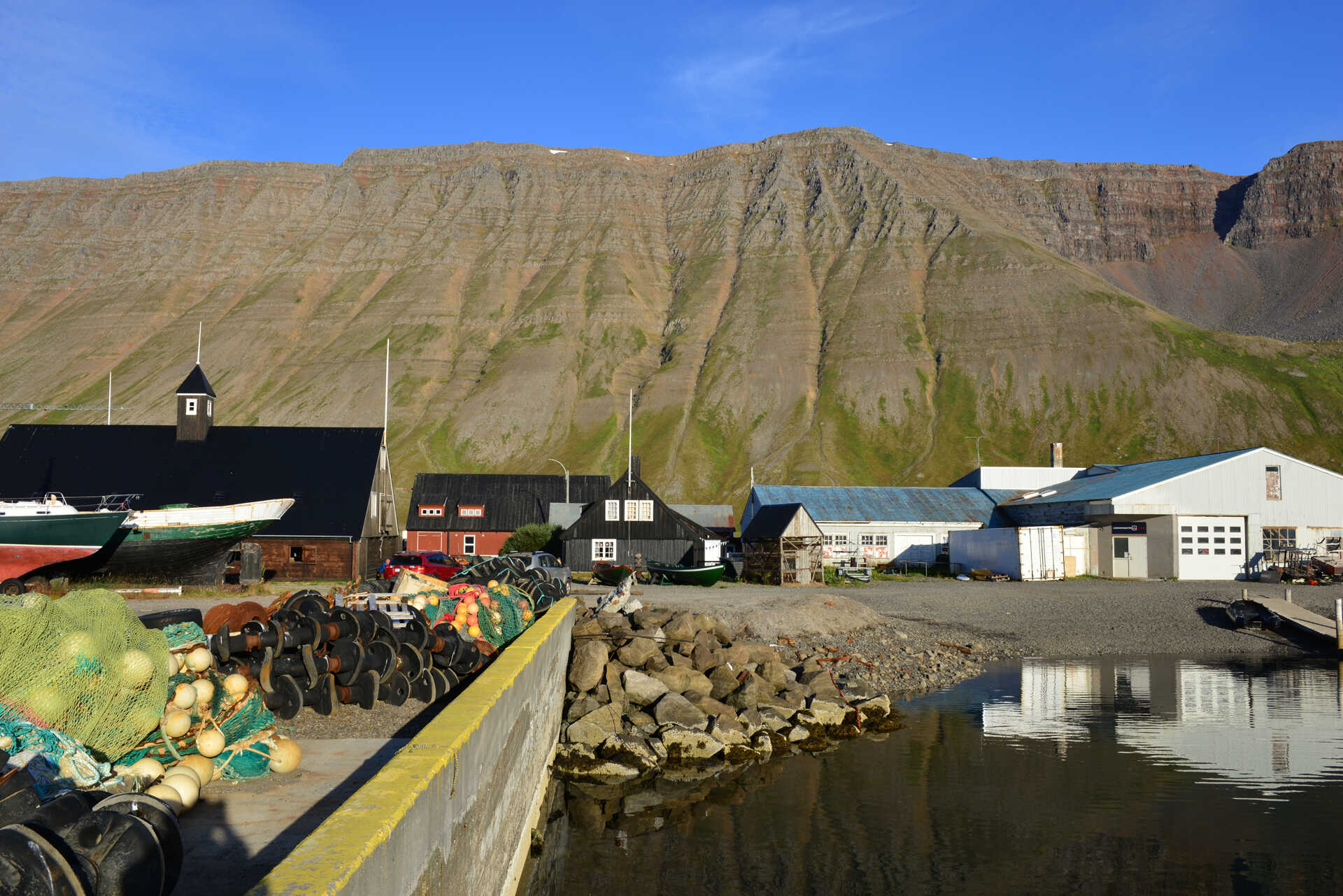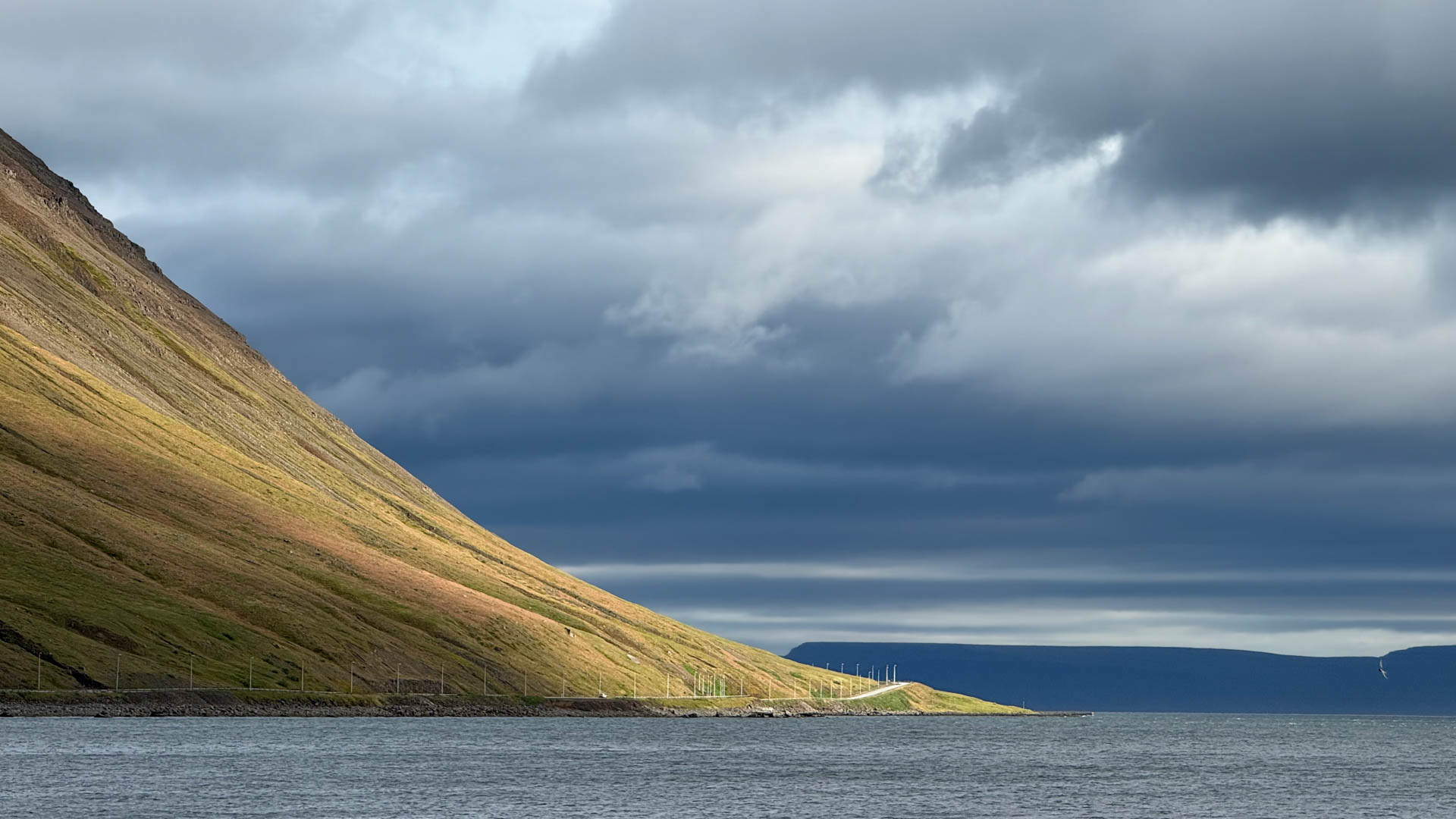 Heute quert Ihr die stark zerklüftete Halbinsel der Westfjorde. Extrem dünn besiedelt, seid Ihr hier in einem der abgelegensten Ecken des Landes unterwegs. Erst seit wenigen Jahren ist Isafjörður von Süden kommend fast vollständig auf Asphalt zu erreichen (nur noch wenige Kilometer fehlen zur Vollendung des Straßenneubaus, Stand Herbst 25). Wer gern die alten Gravelrouten fahren möchte, erlebt die Kargkeit und wilde Schönheit der nahezu unberührten Landschaft. Eine Naturattraktion sind die gestaffelten Kaskaden der Dynjandi Wasserfälle. An Tagen mit Kreuzfahrtschiff-Anläufen in Isafjörður sind sie auch das Ziel zahlreicher Ausflugsbusse.