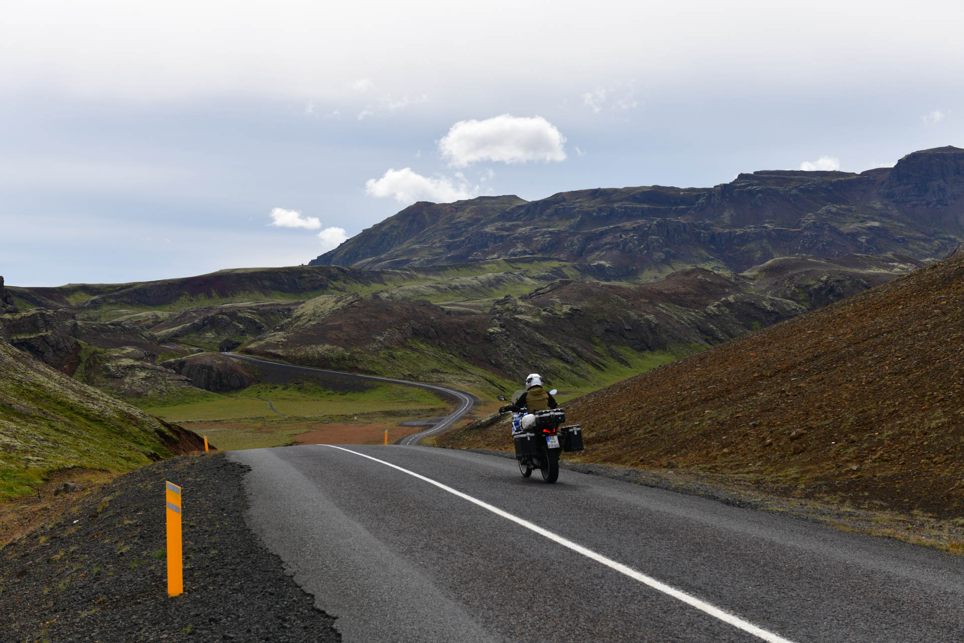 Im rauen Hinterland von Reykjavik auf Island beim Motorradfahren