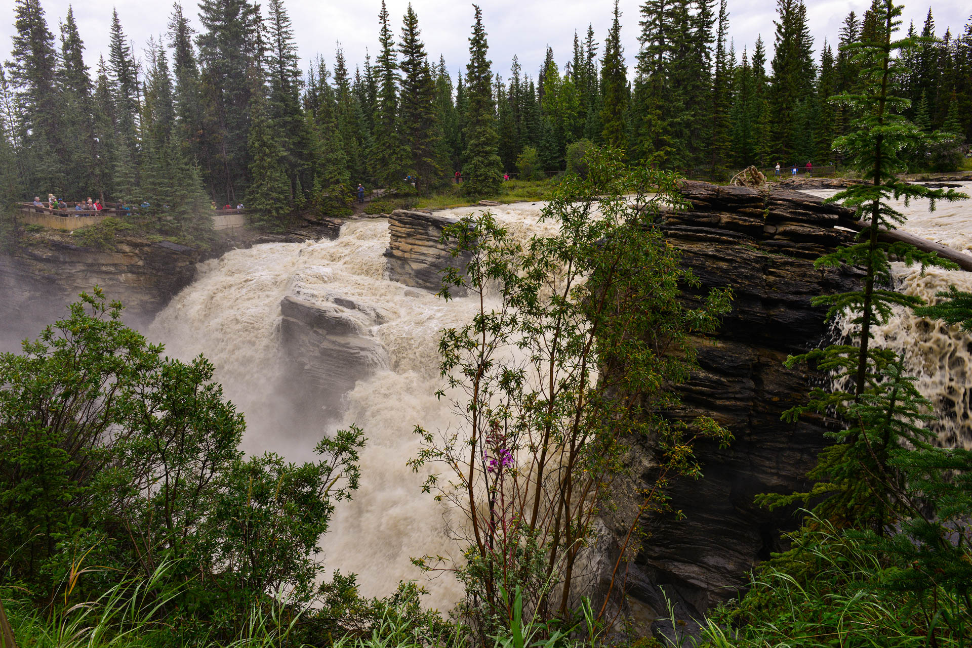 Gewaltige Wassermassen am Athabasca Falls am Icefields Parkway