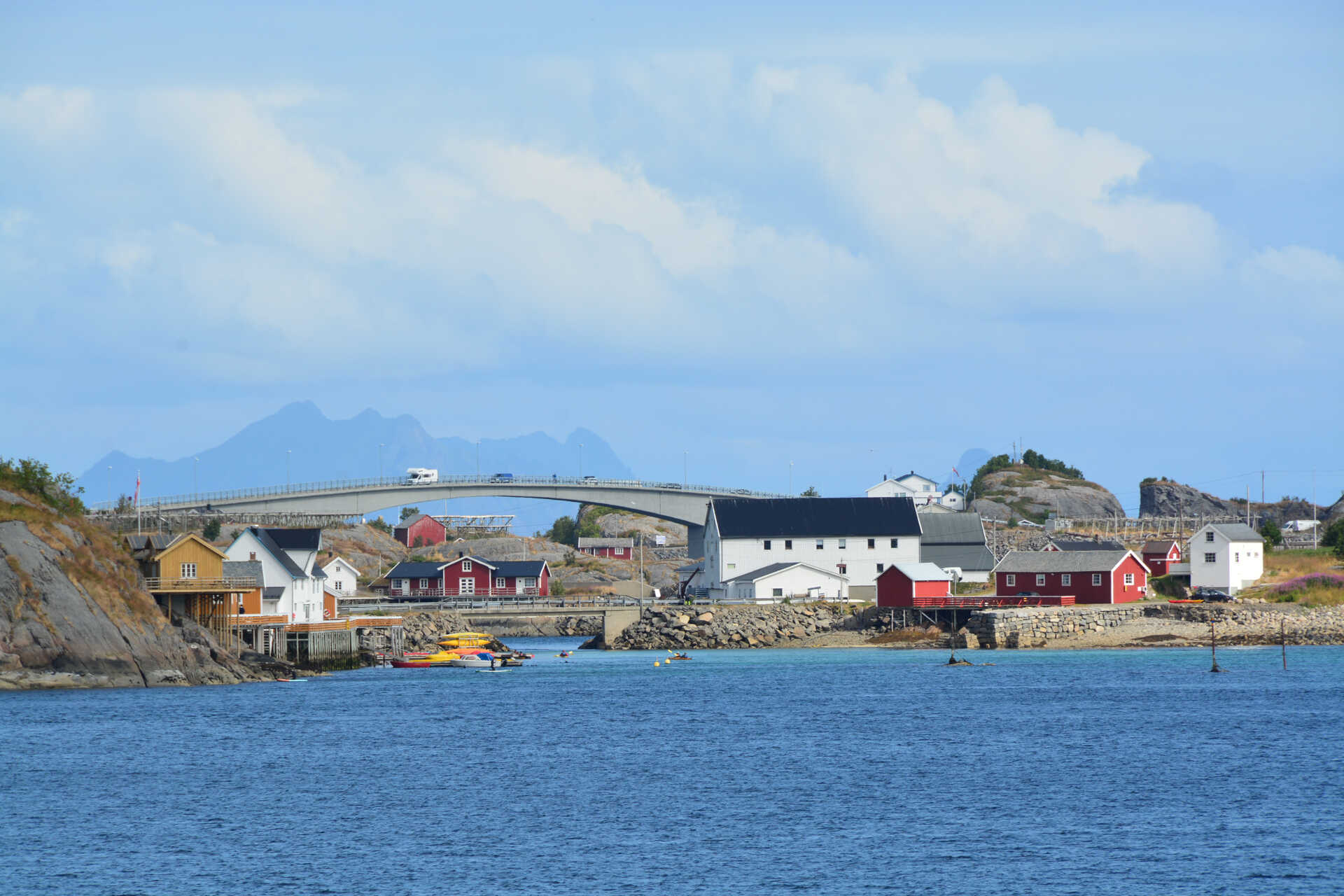 Heute fahrt Ihr auf die Lofoten, die berühmten Inseln vor der nordnorwegischen Küste mit ihrer zackigen Bergsilhouette. Ihr übernachtet in einer Hotelanlage direkt auf den Klippen am Meer in einem so genannten Rorbu. Ein Rorbu diente einst dem Fischer als Unterkunft, heute haben die "Hütten" Hotelstandard. Übernachtung bei Leknes
